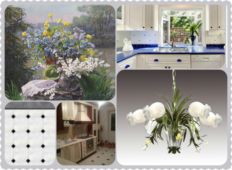 Эх, дорогая:) если отключить мозг, то я за коллаж #1. Я просто не люблю светильники "флористика". Не перемудри:) а то и люстра акцент, и шторы, и на плитке цветы. Я бы взяла спокойную люстру (круглый беж с висюльками), под вытяжкой панно с цветами и цветы на шторах. По-моему, так акценты более правильно будут расставлены;) но это только мое мнение...