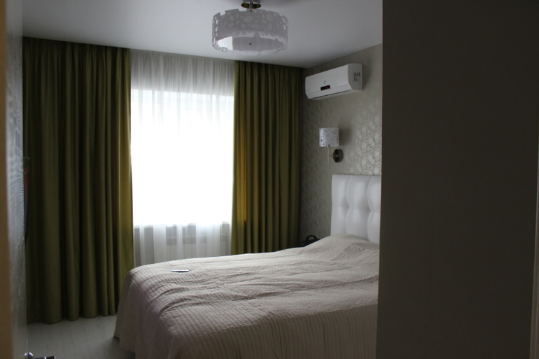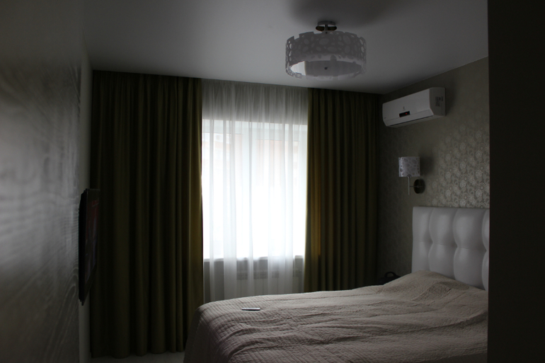 Очень красиво прям спальня моей мечты и принците так и планиреум) скажите а потолок у вас какой, и как сделана ниша для штор