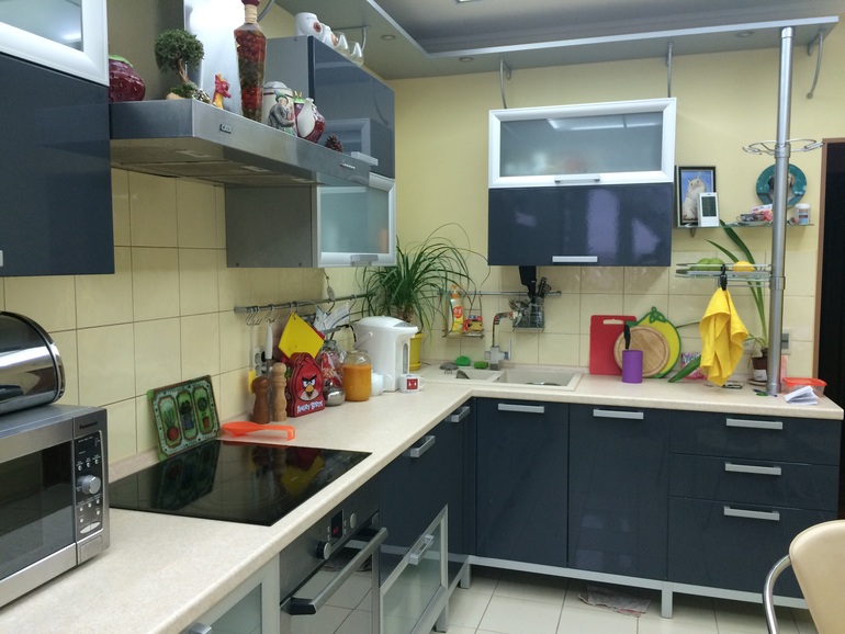 Интерьерное решение кухнидобрый день всем. Наша кухня очень медленно начала приобретать вид. Столешницу мы поменяли на светлую, была в цвет фасадов. Стало светлее. Но теперь фасады не вписыватся, мне так кажется. Оставлять их мы не будем, потому что они нас совершенно не устраивают, темный глянец, местами рассохлись. Прошу подсказать какие варианты могут подойти, учитывая что ножки алюминиевые, и боковины серые в цвет металлик. Буду примного благодарна. А то мозг уже опух.