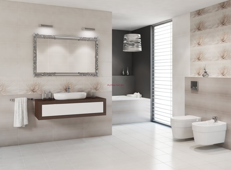 Кому интересно вот наша плитка в ванной (раскладка такая же как на фото, где зеркало)