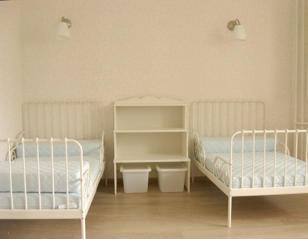 я за две отдельные кровати. Хотела одно время двухярусную, увидела в магазине и загорелась, но нет, слишком опасно...мало ли какие игры...нет, я с ума сойду! скоро докупим Денису кровать как у Вики (тоже Икея, только деревянная с барашками)) и все, на несколько лет хватит им))