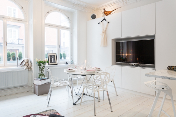 Добрый день, Галина! Двери лучше не трогать, а вот с мебелью поиграть, так же можно выкрасить одну из стен в темный цвет___www.vmrstudio.com