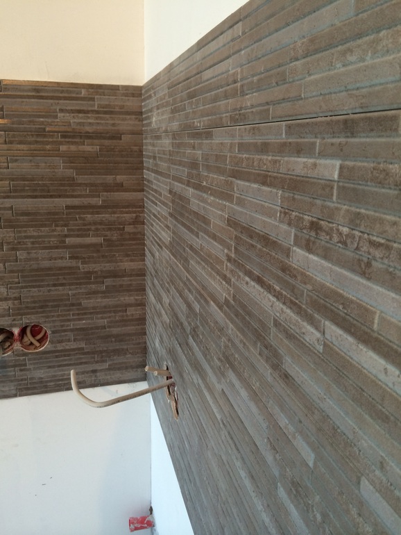 Интерьерное решение ванной комнаты..... Плитку в ванной и фартука на кухне) правда затирка пока нет)
