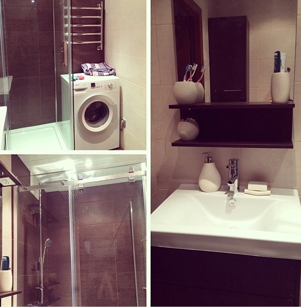 Муж у меня противник ремонтов, поэтому я все взяла в свои руки и в январе сделала в ремонт в ванной. Ванну заменили душевым уголком, перенесли полотенцесушитель, поменяли все коммуникации. Вот небольшой коллаж, что получилось: