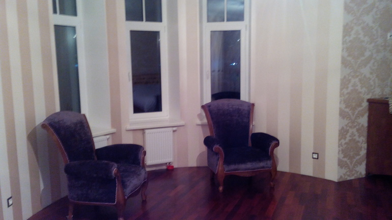 Ирина, на узкие окна лучше подойдут римки или их более затейливые разновидности. Тем более, что вверху есть глухая рама и шторы можно поднять. Дополнительно поставить эркерный карниз и сделать четыре "столбика" с тюлем. По фото окна небольшие и не стоит перегружать их тяжелыми портьерами, но римки можно сделать и плотные.Можно взять однотонные портьеры в цвет чудесных стульев или, наоборот, использовать этот цвет в отделке портьер и римок, а основным выбрать золотисто-бежевый.В общем, если решите, звоните http://mezzola.ru/info/kontakti/ или в лс. Вы можете проконсультироваться или присмотреться к тканям, это не стоит денег :))