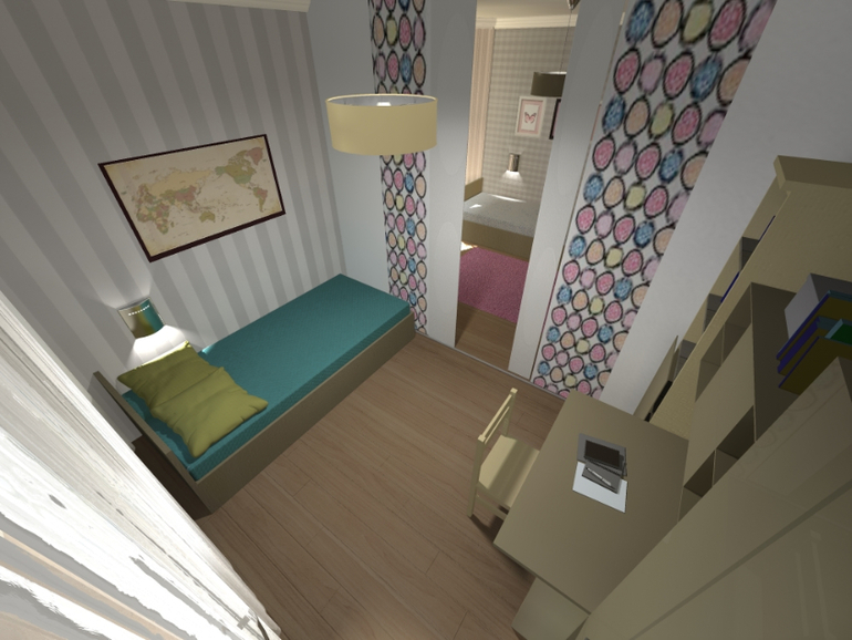 нуууу. это значит сделать все по другому. мебель я выбрала уже. книжки и игрушки появятся, кужа же они денутся. стены сделаны универсальны должны быть, потому что в эту часть потом переедет девочка.