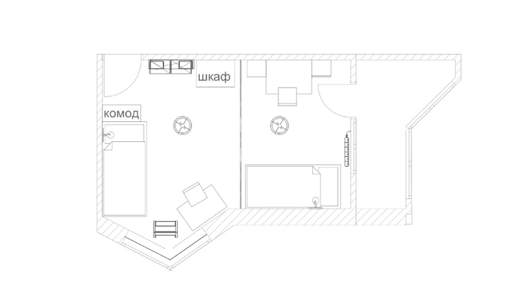 Это одна комната, поделена? А куда мальчик будет вещи класть (одежду) где шкаф? И еще у мальчика выход на балкон получается, может его задействовать?