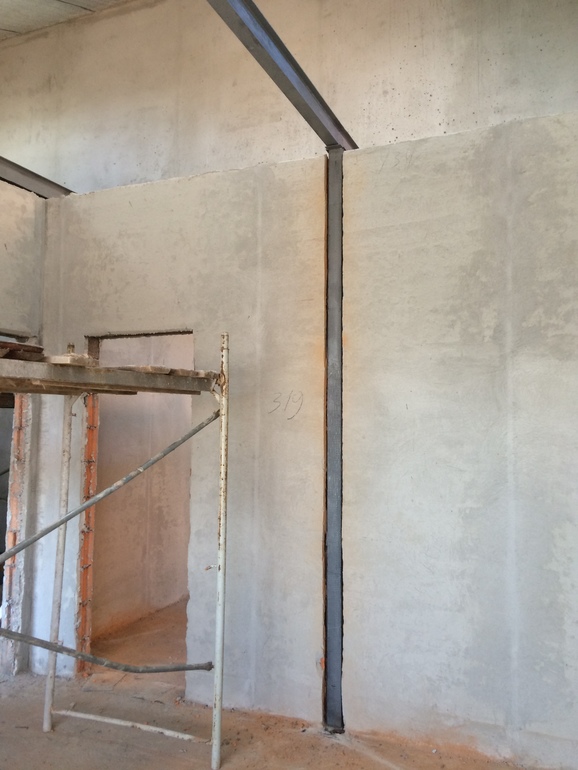 Постройка дома, этапы.Возведены и оштукатурены все перегородки, утвержден план по водоснабжнию, на прошлой неделе поднимали мансарду, не все сделано, в основном продольные балки, но главное дело пошло ) Положили балки на перегородки и укрепили столбами, которые вштробили в стены: