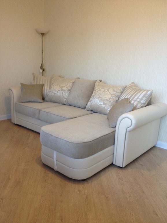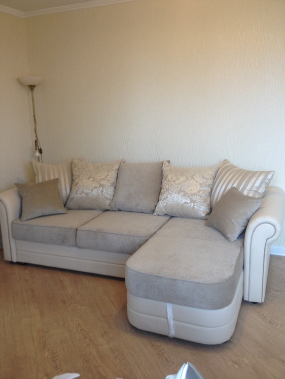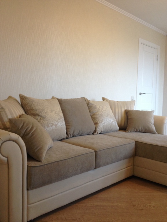 Диван прекрасен, ему бы обои потемнее на фон, а то он как бледная поганка на фоне бежевой стены