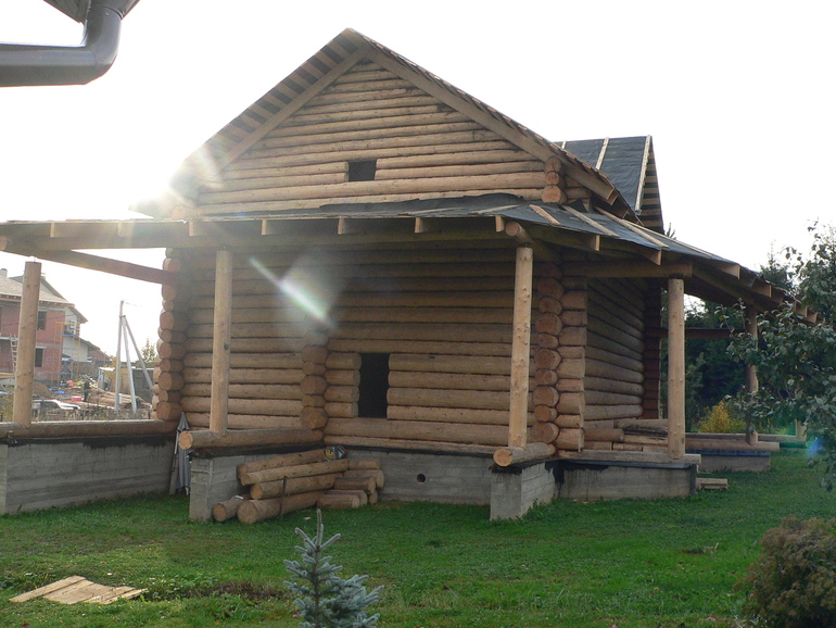 для того чтобы дом не щелкал (так муж выразился, занимается как раз строительством таких бань и домов), необходимо чтоб год отстоялся, так как дом ваш из кругляка, затем заниматься коммуникациями