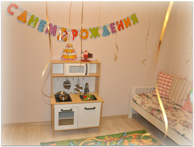 А это мы украшали комнату к дочкиному дню рождению, фото делала уже ночью :)