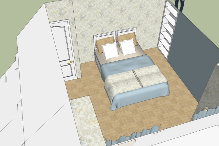 А если еще кровать изголовьем к стене прислонить, той, что напротив рабочего места? пробовали?