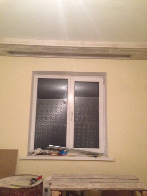 Вот и мы сначала так сделали обрублено. Когда повесила шторы поняла что это совсем не то. В итоге купила карниз другой и повесила шторы на всю стены, а в дырку планировала свет сделать, но руки так и не дошли