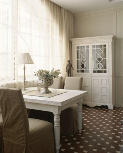Скорей это английская классика. Можно сколько угодно спорить по концепции этих интерьеров, но это мило, в этом интерьере комфортно находиться и это сделано суперпрофессионально. Мужу, например, тоже не очень нравится, а меня раздражает подход к дизайнерской работе по интерьеру, когда расставят 2 кресла, стол и кровать, дальше, как говориться, захломляйте сами.