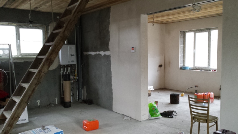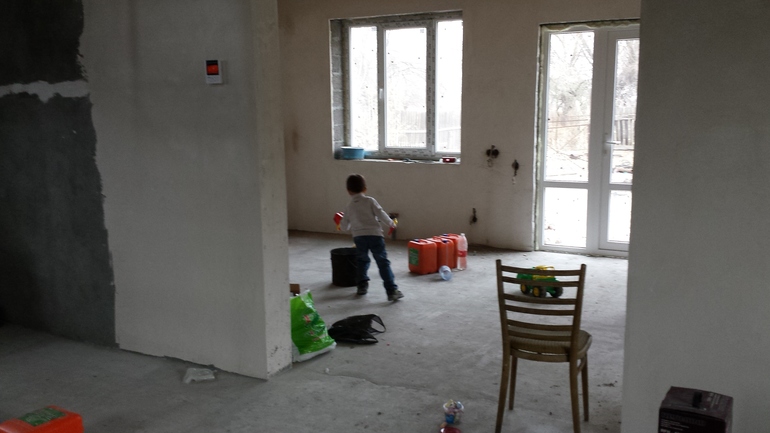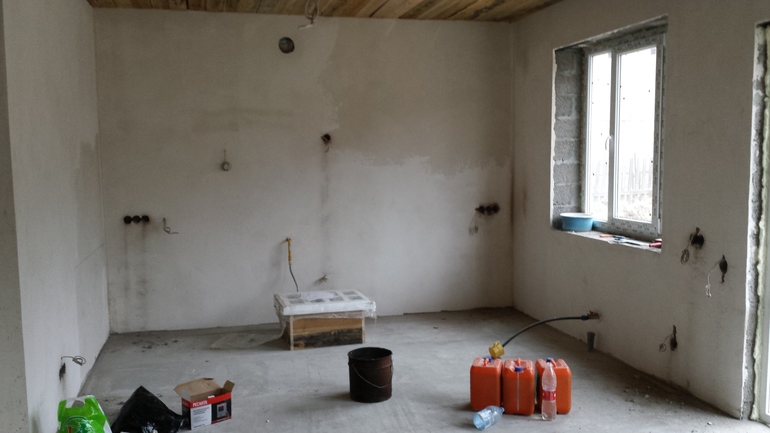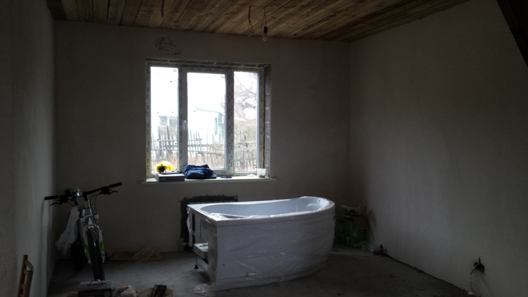 поставили стены(из керамзитобетонных блоков) окна, двери, сделали и утеплили перекрытия между первым и вторым этажем и крышей. Поставили окга и жвери, сделали газ, отопление, разводку электричества, канализацию. Стены отштукатурегы и отшпаклеваны...куплена плитка на 1 этаж, плитка для ванной, ванна, плита и посудомоечная машина...и на этом наши отложенные деньги закончились...1900000....из них 370 тыс ушло на покупку участка...теперь после нового года будем брать кредит и делать перегоодки на 1 этаже и его обживать..надеюсь весной въедим.. очень люблю наш домик...ну и фото прделанного..