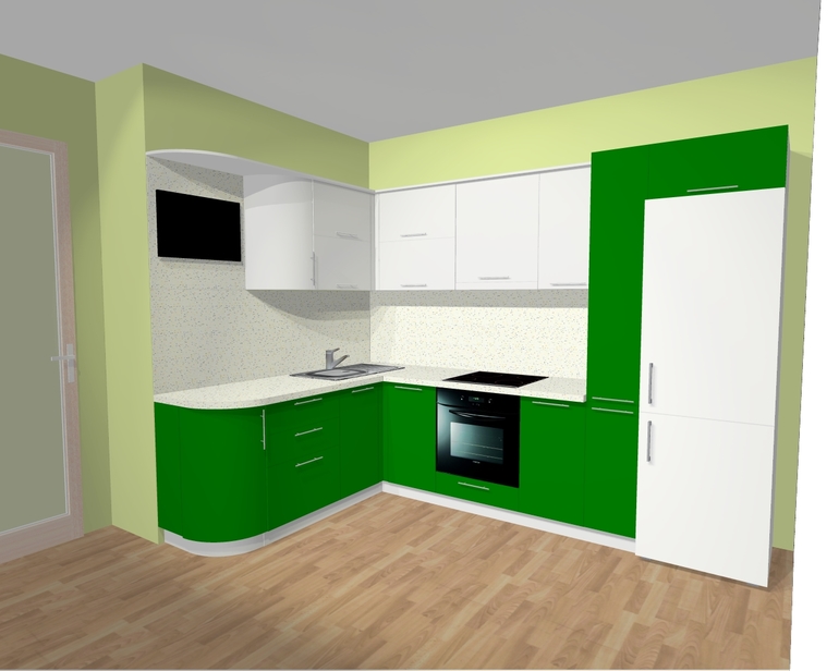 Второй вариант больше нравится. А мебель прямо такого насыщено зелёного цвета хотите?