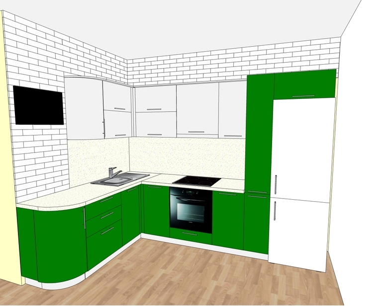... Теперь надумала я такую кухню. Как думаете, уместен ли здесь кирпич (гипсовый, белый)? Остальную часть фартука хочу сделать под цвет столешницы (что-то под мелкий камень).