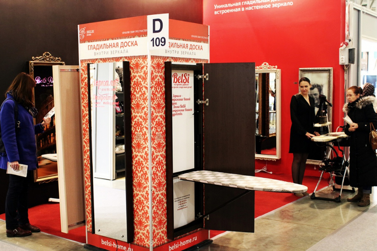 Интерьерные штучки.Уникальная гладильная доска, встроенная в настенное зеркало.