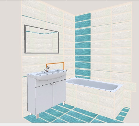 Вот проект ванной. Мозаику хотела пустить вертикально в 2 квадратика с двух сторон от голубого столбца, причем слева по другой стене (или не стоит?...).