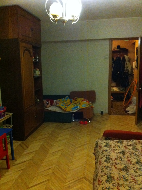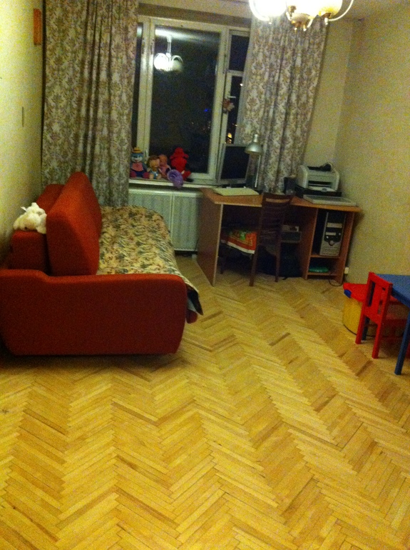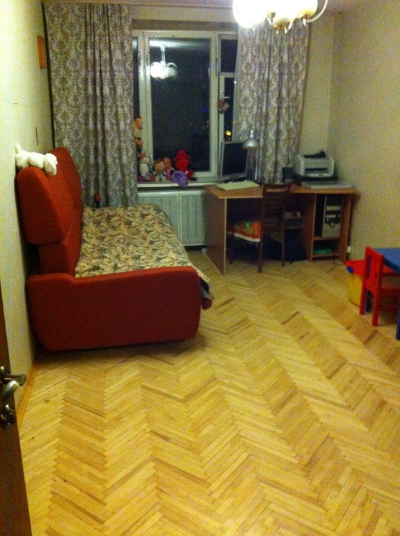 Смогли осилить ремонт паркета. В реале он белее, на фото какой-то желтый получается. Обои менять года 2-3 не собираемся. Хотя...Если сейчас наклеить светло-голубые обои?)))