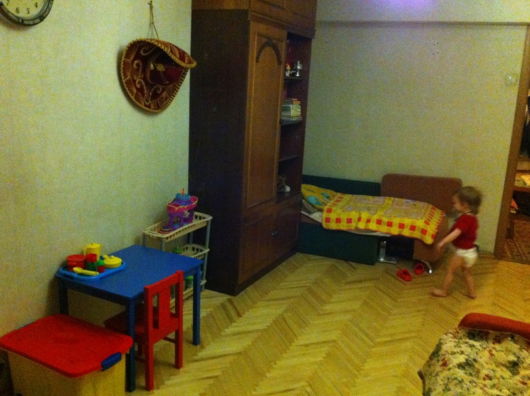 Вид от окна на детский уголок, шкаф и кушетку дочки.