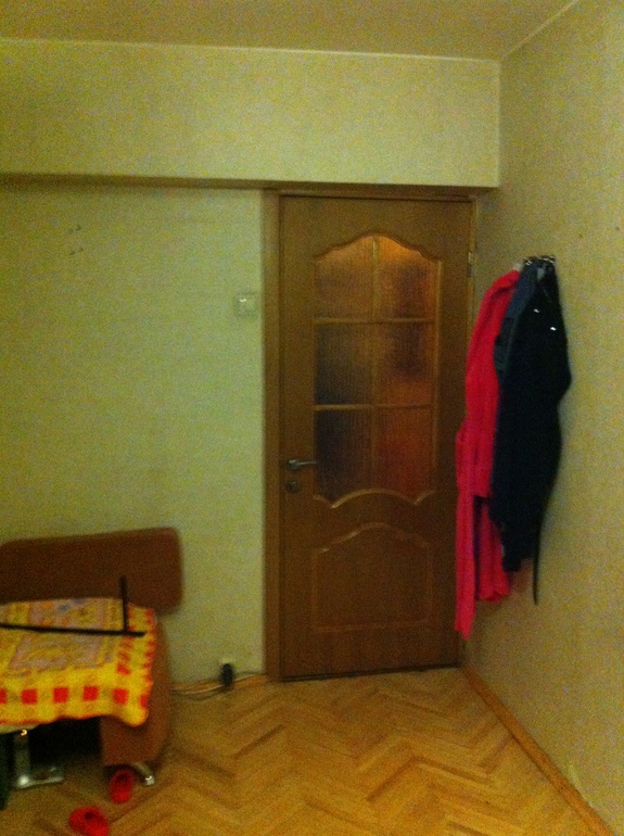 Некоторые огрехи исправим (розетку на полу уберем, крючки для одежды у двери уберем)