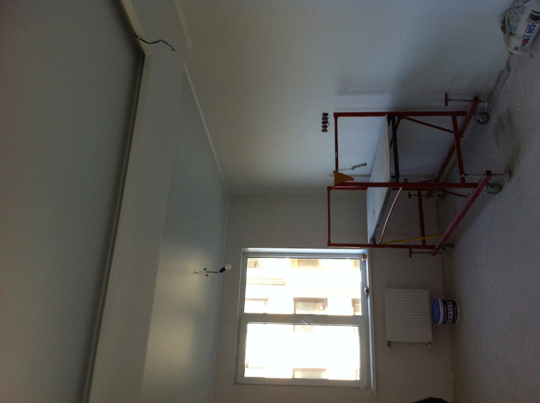 После этого наши строители возвели короб на потолке и подготовили стены к поклейке обоев.