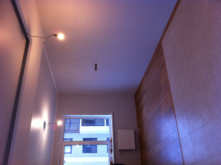 Далее натянули потолки, мы брали немецкую пленку, за работу и материал отдали 17 тыс., включая закладки под люстру и потолочный карниз.