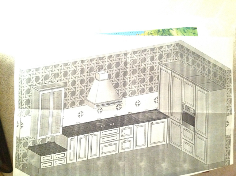 Это эскиз кухни, вся длинная стена выходит в гостинную.