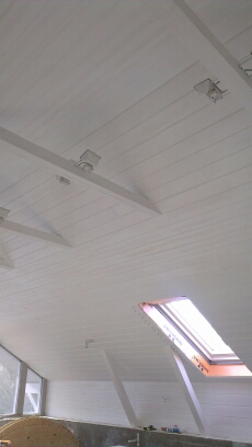Кое-что из отделки второго этажа. Зашили окошки, потолки сделали.