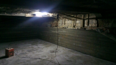 вверху отверстие пока не решили, что будет, либо просто стекло и часть дневного света будет поступать в подвал, либо сделать еще одну лестницу из кухни.
