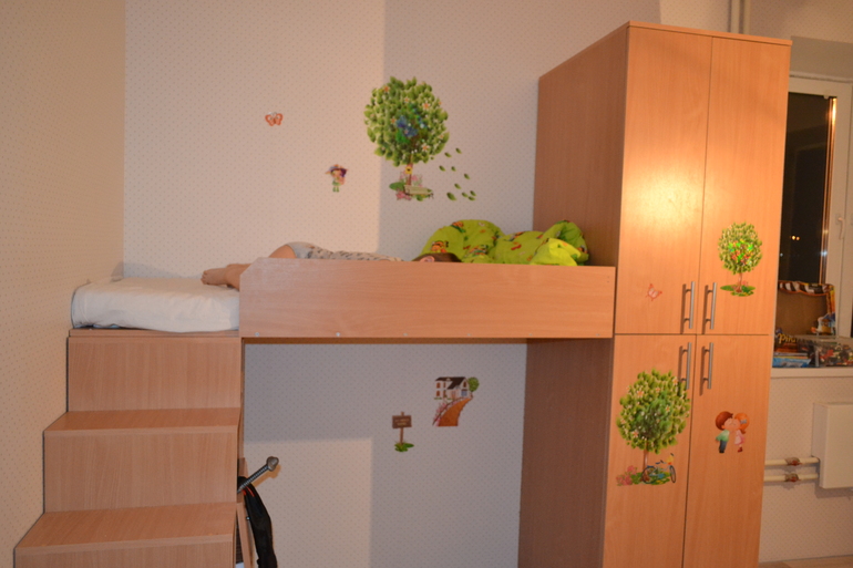 детская. кровать старая из однушки (не до конца собрали), около окна думаю угловой письменный стол. в принципе больше мебели в этой комнате не планирую