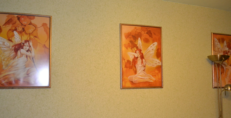 Поздравляю с новосельем!Завидую белой завистью — у малыша своя комната!))..Разрешите подкину пару идеек)) В коридор посоветую поставить галошницу Стэлл от Икея *(белую) а то и две можно — как раз напротив всего шкафа..над ней ваши картины, а зеркало не надо..Кухня у вас хорошая и ничего что не дорогая..зато простая и не надоест — столешницу потом поменяете и опять новая кухня))) только вот ручки у шкафов можно поинтересней подобрать — и она заиграет по -другому....а что это за трубы у вас около плиты?...детская замечательная ( с двумя окнами!)...кровать и шкаф хороши — не меняйте)) а вот стол к окну я бы не ставила — по фэн-шуй не хорошо для учебы ( не концентрируется ребенок) и сидеть он так будет спиной к двери ( нет зашиты, не видно кто входит в дверь, не комфортно).стол бы поставить вдоль стены около стеллажа , над ним полки ( которые всегда пригодятся)))..а у окна организуйте игровую..в гостиной обои хороши...берите кровать — не спите на диване)) ну и плитка в ванной чудесна..Все будет хорошо! Рада за вас! удачи!