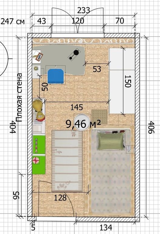 Есть еще вариант — одну кровать выкатную под подиумом около окна, только выкатывается ширина кровати, а не длинна (я не знаю понятно объяснила?),вторая — кровать шкаф — надо смотреть как удобнее чтоб все разместить, чтоб она в высоту или в ширину стоялаНа бб можно найти такой вариант — находила по поискуключевые слова "шкаф-кровать" и "выкатная кровать под подиумом"может в комментариях видела этот вариант с фото)