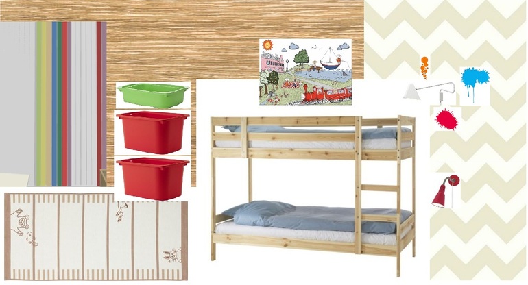 Методом исключения пришли к такому варианту - двухярусная кровать и паксы от Икеа.