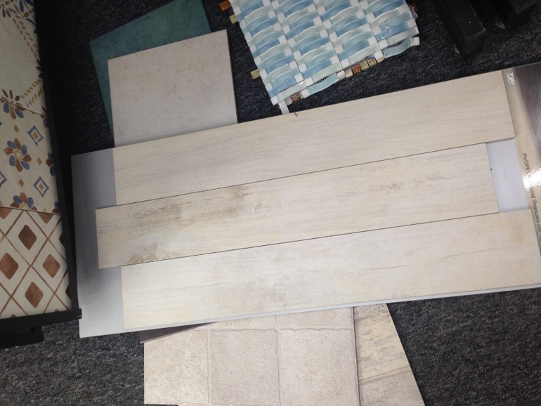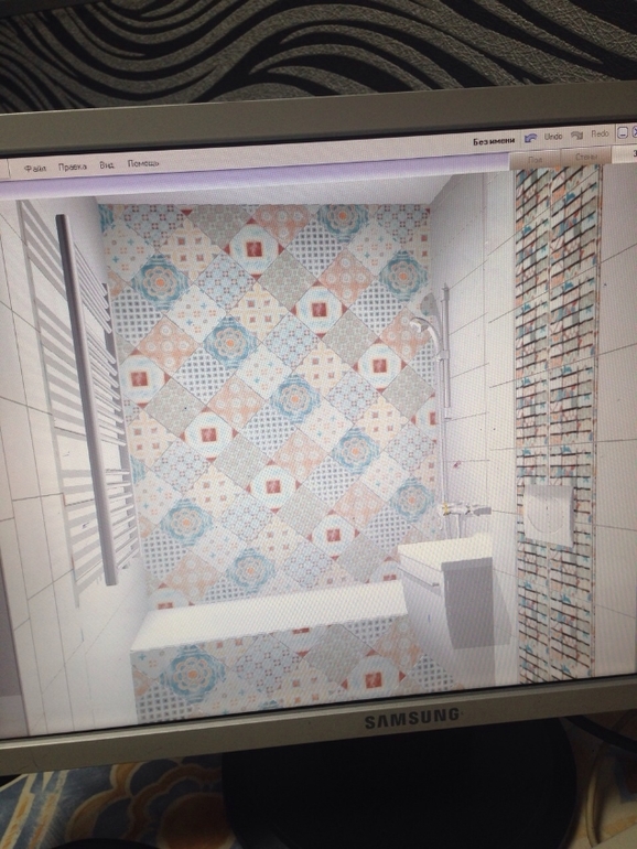 На раскладку у голубой плитки не смотрите. Дизайнер в магазине видит по-своему и делает все крайне медленно, а у меня не было времени просить разные варианты.
