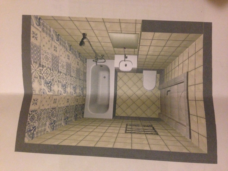 Предполагается, что пестрая плитка будет только за ванной и может быть на экране под ванной.