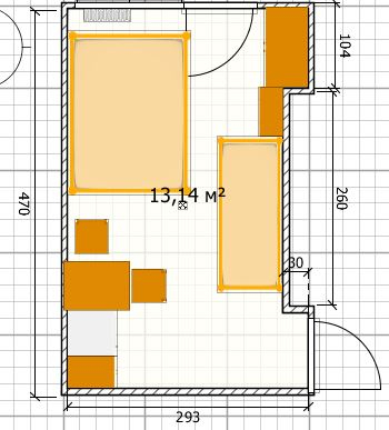 Дверь, в коридор открывается в коридор. От левого угла до балкона 160Диван евро книжка 150 на 200Шкаф-пенал глубина 60, ширина 40 на 200Стол 70 на 50Холодильник 60 на 60 на 160Платяной 98 на 56 на 200