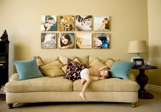 Одним из самых оригинальных и красивых приемов украшения стен холстами является фотостена. Итак, фотостена - это один из вариантов украшения пустующих стен, главная идея которого заключается в создании композиции из нескольких фотографий. В принципе фотостена может быть создана из самых разных и хаотично подобранных фотографий, но более интересно она будет смотреться, когда в основу ляжет некая композиция или идея. К создание фотостены можно подойти с нескольких сторон.