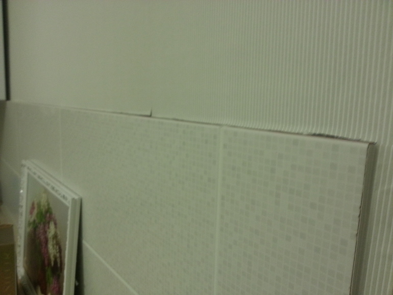 У меня так. Раскладку крепили уже после укладки плитки и обоев