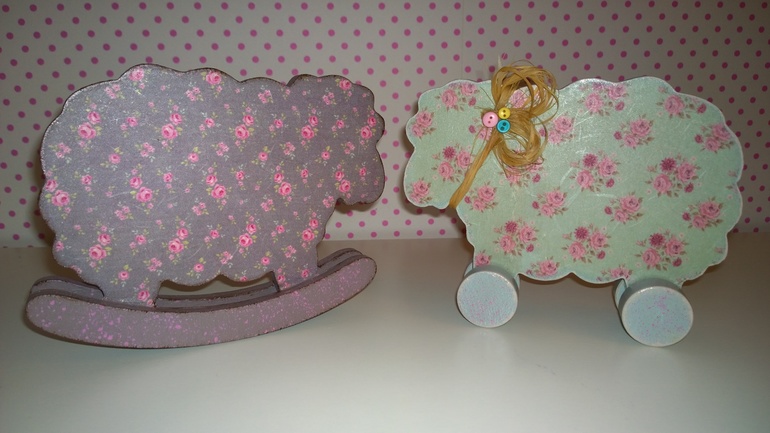 Уже очень-очень скоро Новый год, самый долгожданный праздник в нашей семье. Я активно готовлю подарки. В технике декупаж сотворились такие чудесные овечки-сосновые. Немножко в тильда стиле, все такие...в розочках:)