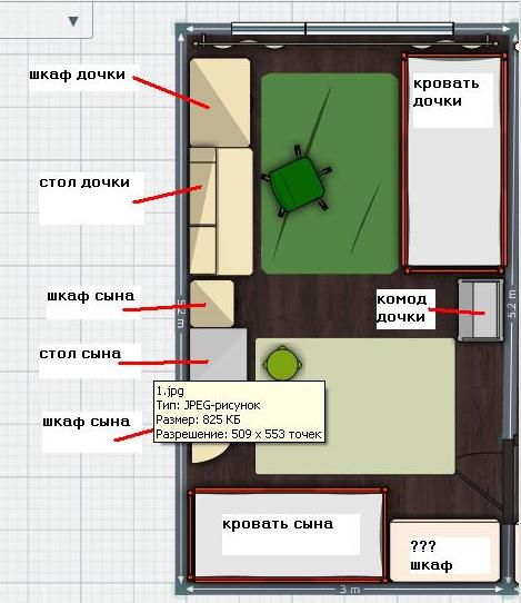 с одной стороны,так будет светлей и просторней,чем в предыдущих вариантах.с другой,после перемещения сына к двери,мне не нравится угол за дверью.либо он пустует,либо туда впихивается "ненужный" шкаф.точнее наш общий,семейный шкаф с верхней одеждой.еще и теряется реальное разделение пространства на зону для каждого.хотя тут тоже загвоздка.дочь просит разделить ее с братом,а сын наоборот,просит быть рядышком с сестрой...как вам такая расстановка?очередной бред?тапки я люблю,критику обожаю))))