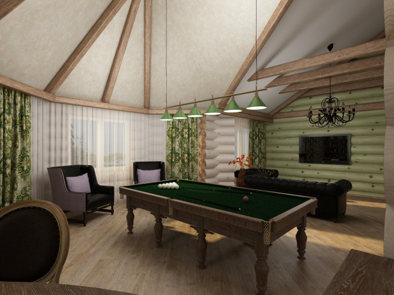 Перед нами стояла задача разместить на мансардном этаже несколько зон отдыха: