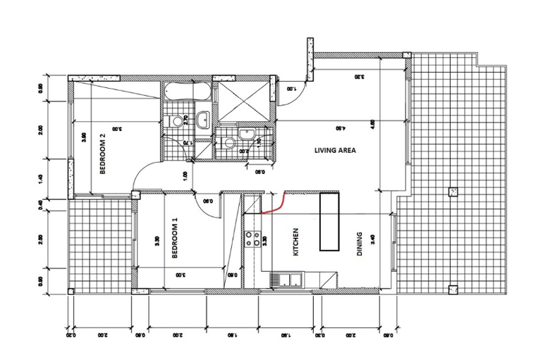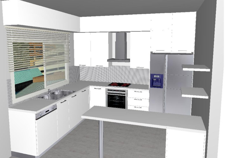 Первый и базовый вариант (отличается от текущего тем, что не будет дверного проема , который выше выделен красным), также пришла мысль оставить дверь и сделать барную стойку с противоположной стороны (т.е. от стены с окном)
