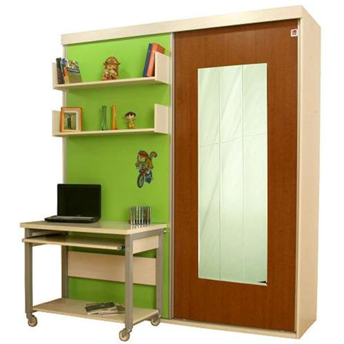 То есть ,подставка под учебник — это не школьная принадлежность?))))Да и размеры этого стола ни на одном сайте не указаны.Я так понимаю,что он прикреплен к самой двери-купе, как бы отодвигаешь дверь и отъезжает вместе с ней стол, видимо для этого и колесики.