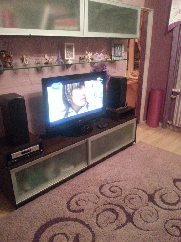 Интерьерное решение гостинойПланируется ремонт вот в этой комнате,это гостиная. Что хочу? хочу сочетание белого и лавандового, стены или под кирпичик белый в сочетании с обоями или просто белые и фиолетовые обои( одна стена фиолетовая, остальные белые) . А на той стене где телевизор, имитация камина, только не в смысле электрический камин,а типа выложеный из гипса или чего-там, внутри свечи( фото ниже прилагается) , над камином телевизор висящий,а по бокам шкафчики. Думаете будет смотреться? или просто поставить белую тумбу под телевизор? Диван останется тот что есть, тумбы или шкафчики нужны обязательно, некуда складывать вещи.......
