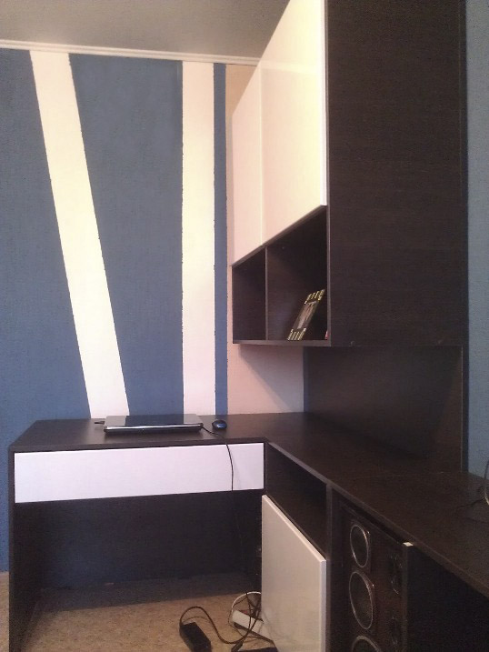 Провода еще видны, столешница у второй половины не закреплена. В общем еще достаточно работы. А будет вот так)