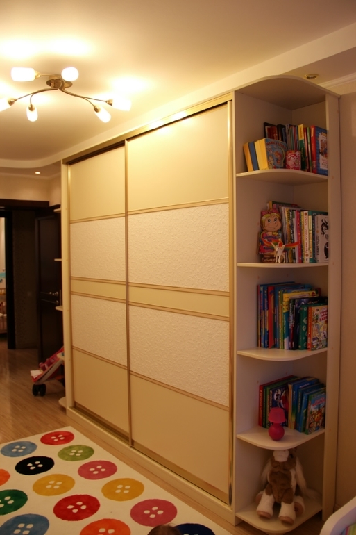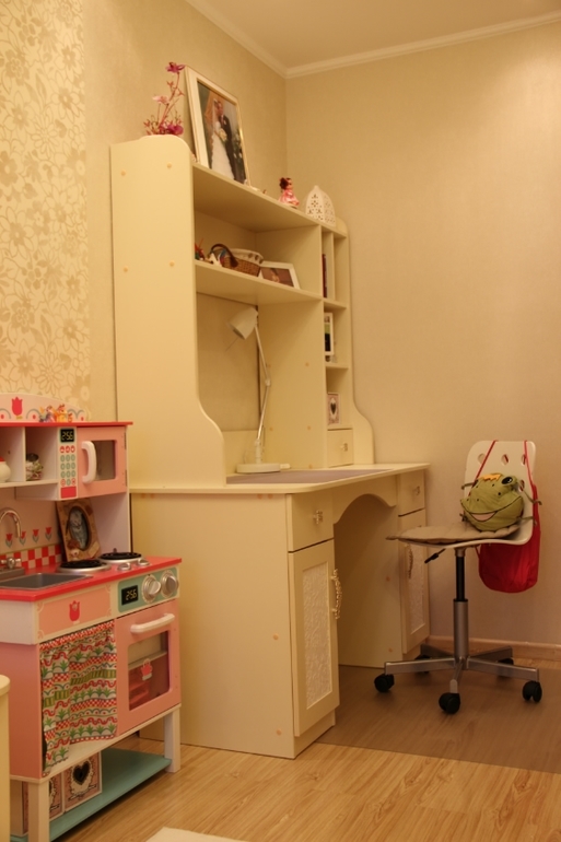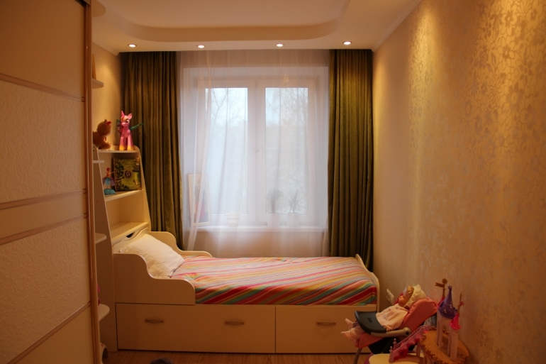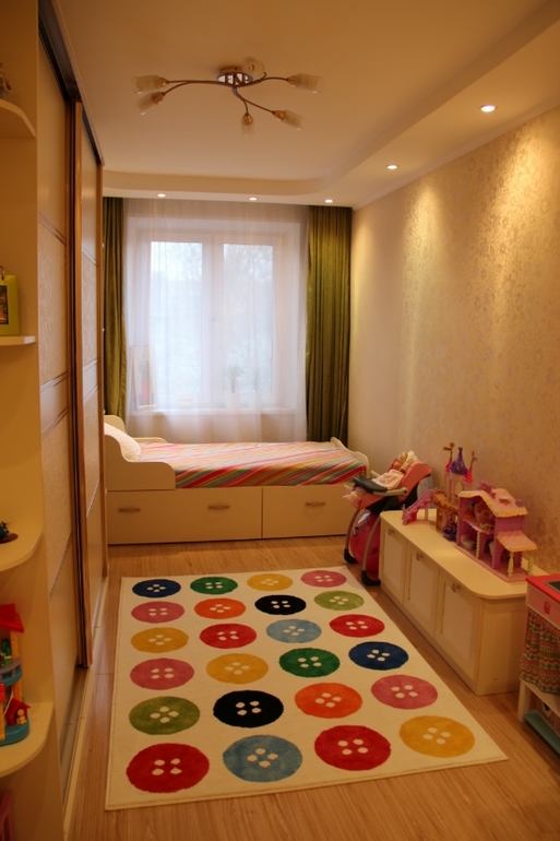 ): думали угловой шкаф поставить и двухъярусную кровать, но в процессе все передумали и сделали так. Дочка живет в этой комнате уже месяц. Все очень нравится) все игрушки и одежда поместились, за столом с удовольствием рисует и занимается. Осталось поменять занавеску и купить декоративные подушки. А,хотела еще добавить, что это длинная комната-вагон в хрущевке, ужасно неудобная комната! Но в нашей квартире она самая светлая, поэтому отдали ее детям. Добро пожаловать)))