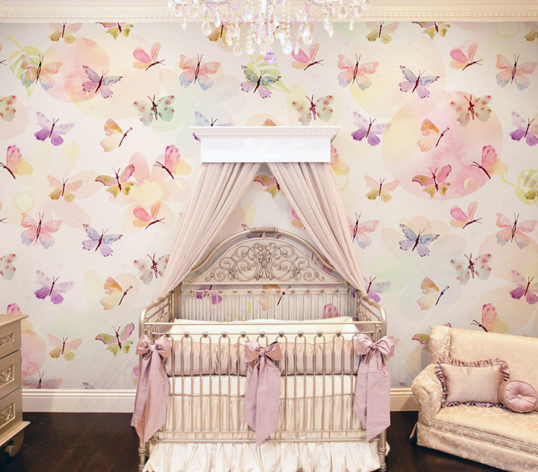нежно, но мне кажется, если всю комнату так обклеить будет в глазах рябить. Здесь нужна комбинация. Можно добавить однотонные или обои в небольшую полоску. для деток в игровой зоне оформить можно уголочек, где поклеить отдельные обои, где рисовать можно и красками и карандашами. Мы такие купили вот в этом магазине http://www.kukurruza.ru/, очень бюджетно вышло. Тем более всю стену не нужно обклеивать, а только ее часть.