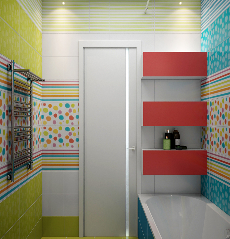 Часто бывает, что людям нравится яркость и разнообразие цветов, но всю квартиру делать "вырви глаз" страшно, поэтому для экспериментов выбирается ванная.